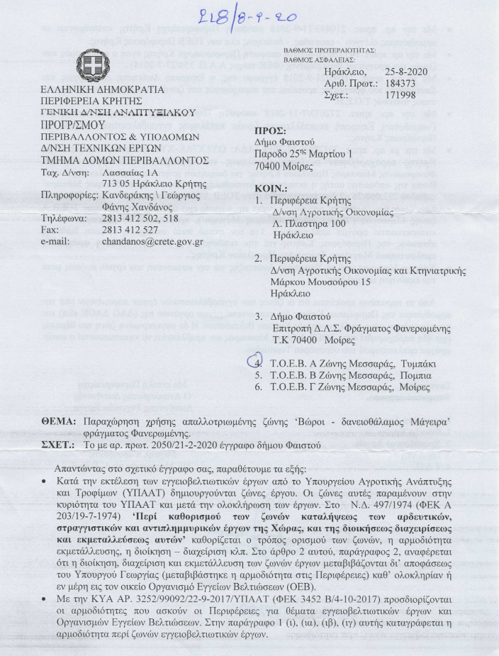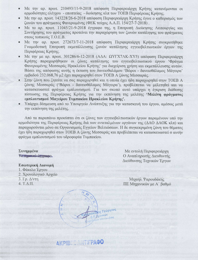 ΜΕΛΕΤΗ ΦΡΑΓΜΑΤΟΣ ΕΜΠΛΟΥΤΙΣΜΟΥ ΜΑΓΕΙΡΟΥ - ΑΙΤΗΜΑ ΔΗΜΟΥ ΦΑΙΣΤΟΥ ΑΠΑΝΤΗΣΗ ΠΕΡΙΦΕΡΕΙΑΣ ΚΡΗΤΗΣ